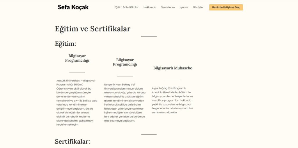 WordPress altyapısını kullanarak, kullanıcı dostu ve işlevsel bir web sitesi projesini uçtan uca tamamladım. Bu süreçte; alan adı (domain) ve hosting yapılandırması, tema özelleştirme ve eklenti entegrasyonu konularında pratik deneyim kazandım. SEO uyumlu içerik yapısı oluşturma, site hızı optimizasyonu ve mobil uyumluluk (responsive) testlerini başarıyla yürüttüm. Proje süresince karşılaşılan teknik sorunları dökümantasyon takibi ve doğru araç kullanımıyla çözerek yayına hazır bir dijital varlık oluşturma yetkinliği edindim.